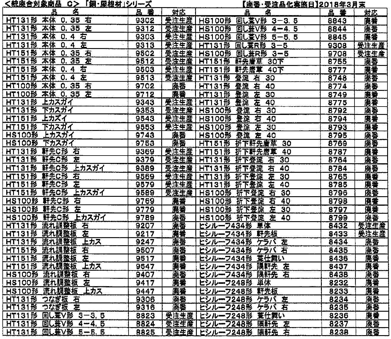 統廃合対象商品C 廃盤・受注商品化 銅・屋根材シリーズ 本掛一文字・ヒシルーフ系列