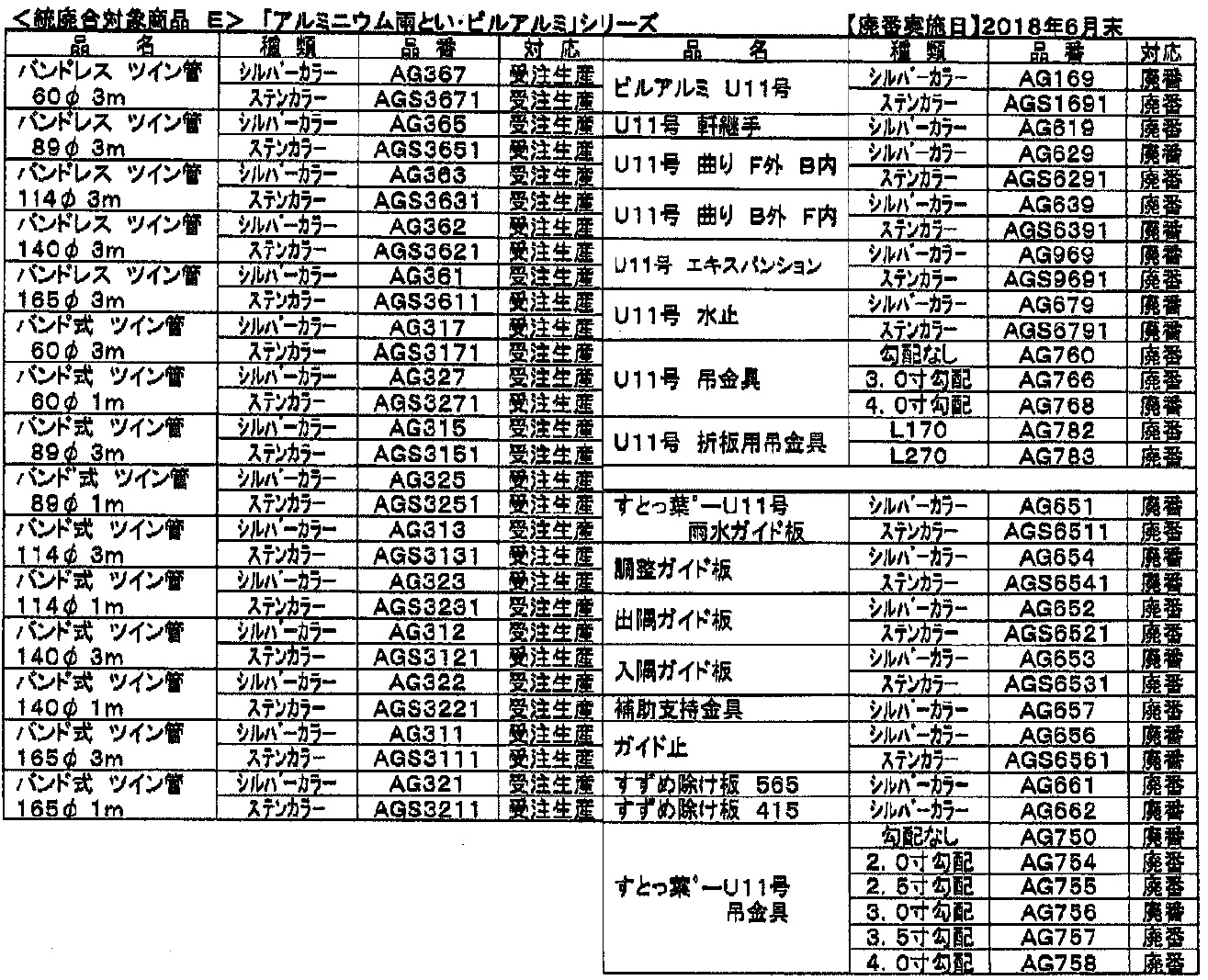 統廃合対象商品E 廃盤 アルミニウム雨とい・ビルアルミシリーズ