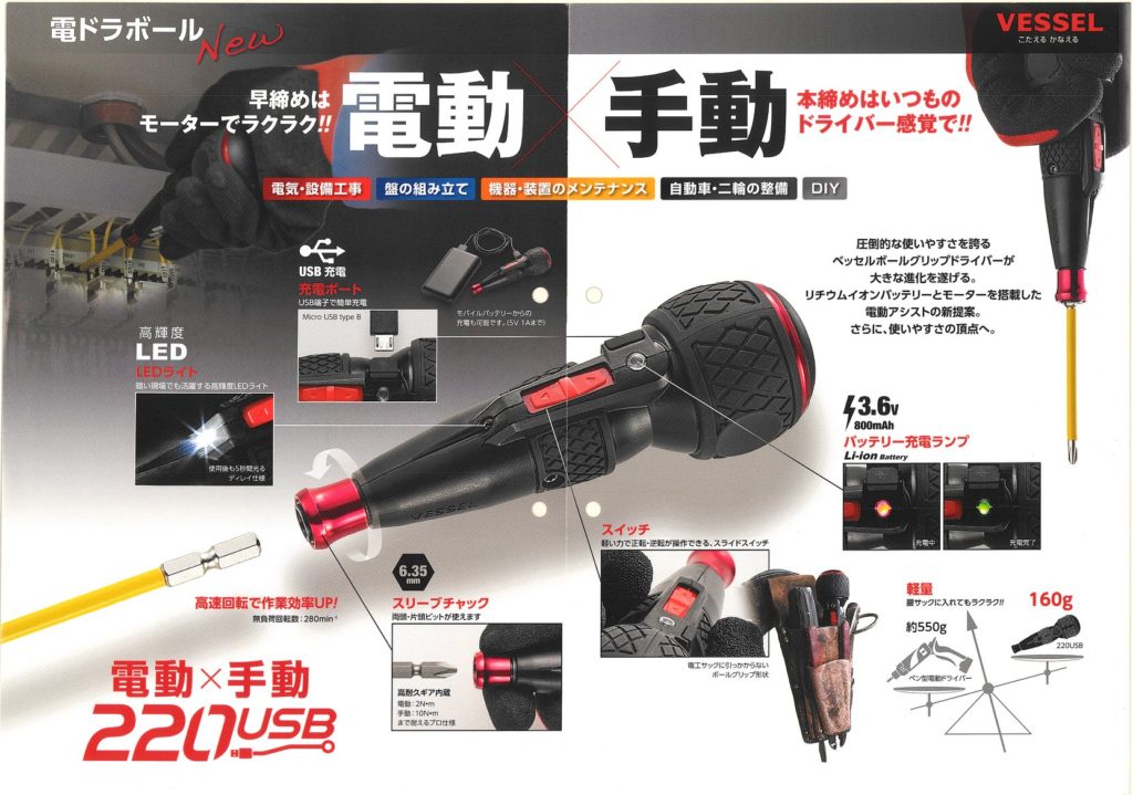 電工屋さん向けのカタログ構成になっていますが、通常のドライバーの形状なので使う場面を選ばないですよね!組み立て家具や自動車、バイク、PCのメンテナンスなどなどなど、一家に一台どうでしょう?