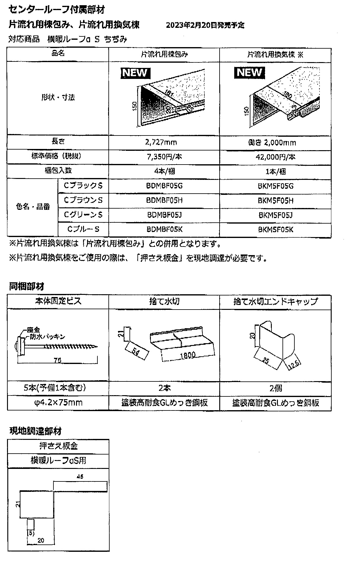 | 2023年2月20日 | 片流れ用棟包み | 横段ルーフαS 横段ルーフS |